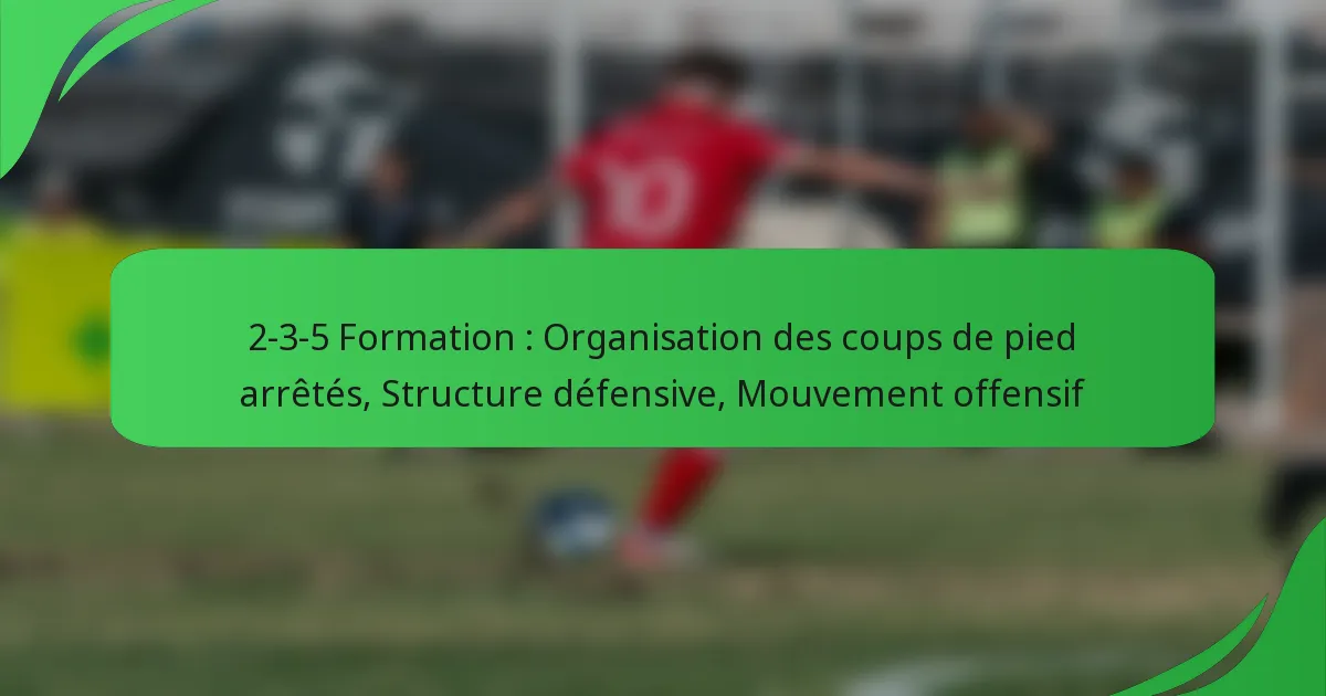 La formation 2-3-5 est une stratégie classique de football qui se compose de deux défenseurs, trois milieux de terrain et cinq attaquants, mettant l’accent sur une approche offensive agressive. En organisant efficacement les coups de pied arrêtés et en maintenant une structure défensive solide, les équipes peuvent optimiser leur performance tant en attaque qu’en défense, facilitant ainsi les transitions rapides et les contre-attaques.